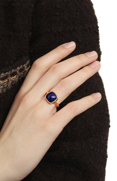 Небольшому кольцу придали сходство с этническими украшениями. Будто выкованное вручную изделие из бронзы покрыли тонким слоем золота 999 пробы. Вставку из рубинового граната удерживают крапановые креп ления, поэтому в лучах света она будто светится изнутри.