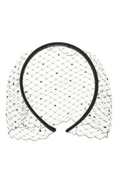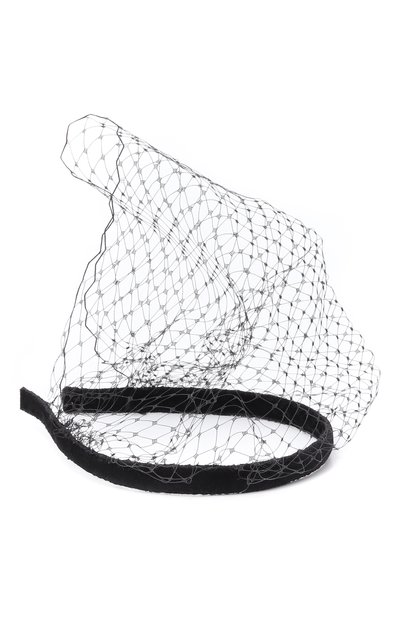 Гибкий полимерный каркас этого узкого ободка обтянули черным сатином с характерным деликатным блеском и закрепили на одной из сторон короткую вуаль в то н. Сетчатую деталь, закрывающую половину лица, украсили миниатюрными кристаллами, которые будут слегка искрится на свету.