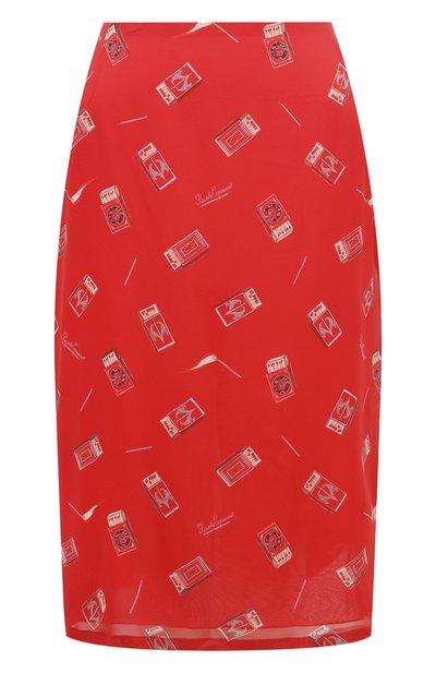 Красная юбка добавит повседневному комплекту долю иронии. Ульяна Сергеенко выбрала для пошива модели без пояса, с высоким разрезом сзади тонкий полупрозрачный шелк с паттерном в виде спичечных коробков. Материал не мнется и идеально сохраняет форму и цвет даже после многократных стирок, поэтому изделие долго будет выглядеть безупречно.
