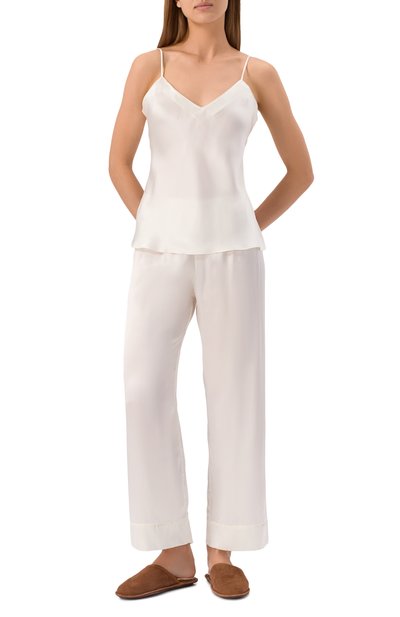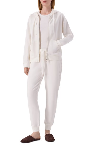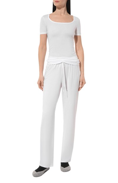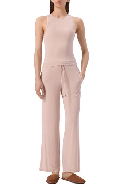 Для пошива брюк из линии Natural Wear использовали органическое хлопковое джерси. Модель прямого кроя дополнили эластичным поясом-кулиской.