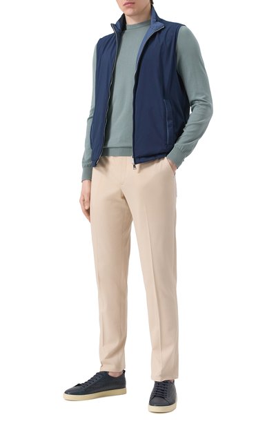 Лаконичный светло-голубой джемпер – универсальный вариант, который подружится и с джинсами, и с классическими брюками. Для изготовления модели мастера марки, основанной Вилли Богнером, использовали нежный кашемир. Изделие из такого материала получилось настолько легким и тонким, что почти не ощущается на тел е, но при этом отлично сохраняет тепло.