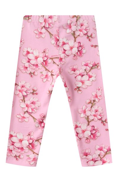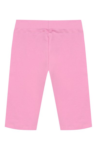 Розовые брюки с узким эластичным поясом сшиты из гладкого хлопкового джерси. Приятный на ощупь материал хорошо пропускает воздух и не пилингуется, плоские швы не раздражают кожу, а крой не ограничивает движения во время активных игр и прогулок. Однотонная модель украшена внизу кристальным логотипом мар ки.