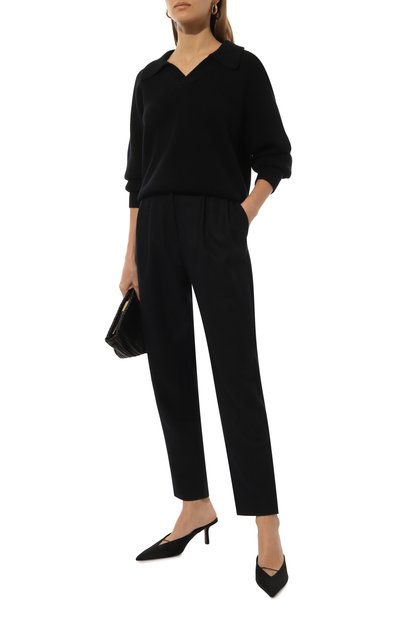 Зауженные брюки темно-синего оттенка выполнены из тонкой костюмной ткани: сочетание шерсти и вискозы делает материал прочным и приятным к телу, а благодаря эластану в составе изделие слегка тянется, обеспечивая комфортную посадку. Наши стилисты предлагают сочетать модель с жилетом и классическим пальто в строгом образе.
