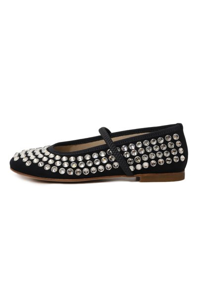 Лаконичные балетки с небольшим бантом на круглом мысе могут поддержать школьный образ. Для создания пары использовали гладкую матовую кожу. Туфли с глубоким вырезом дополнили эластичной лентой, фиксирующей стопу.