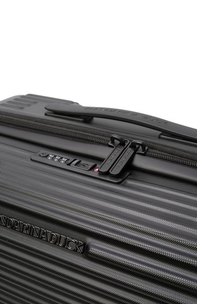 Чемодан Pin Up 6 на четырех сдвоенных колесах, вращающихся на 360°, изготовили из вторичного полиэстера. Аксессуар с короткой и телескопической ручками застегивается кодовым замком TSA. Модель с возможностью увеличения объема дополнили двумя внешними карманами, а также парой отделений на молниях и прижимными ремнями внутри.