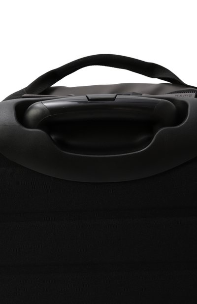 Чемодан с телескопической ручкой и маневренными колесами сшили из прочного переработанного полиэстера. Аксессуар с эластичными прижимными ремнями, а также внутренними и внешними карманами на молниях закрывается кодовым замком TSA.