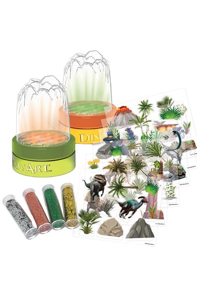 Набор для раскрашивания DinosArt поможет ребенку в возрасте от семи лет расширить знания о динозаврах Юрского периода и раскрыть свой творческий потенциал. В комплект входят 40 страниц с эскизами, 40 трафаретов, 8 страниц с узорами для втирания, 200 наклеек, 12 цветных карандашей, а также страницы с познавательными фактами и инструкция.