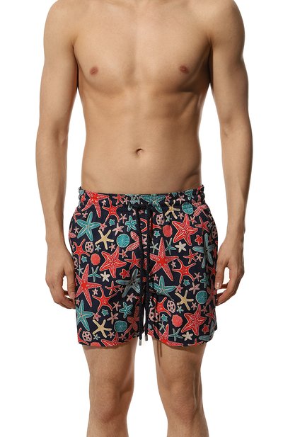Желтые плавки-шорты с паттерном в виде осьминогов сшили из гладкого эластичного текстиля, нити полиэстера для которого произвели из переработанных пластиковых отходов. Модель с регулируемым поясом-кулиской не боится воздействия соленой и хлорированной воды и быстро сохнет. Изделие дополнили сетчатым подкладом.