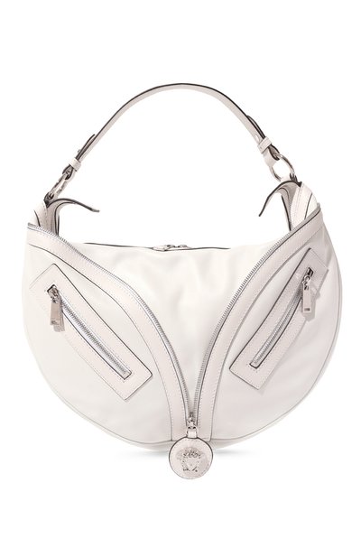 Сумка Repeat из телячьей кожи, декорированная пуллером-медальоном с Медузой Ронданини, – переиздание модели 2003-2004 годов. Аксессуар с декоративными и функциональными молниями дополнен двумя внешними и одним внутренним карманами. Короткую ручку можно заменить входящим в комплект регулируемым ремнем.