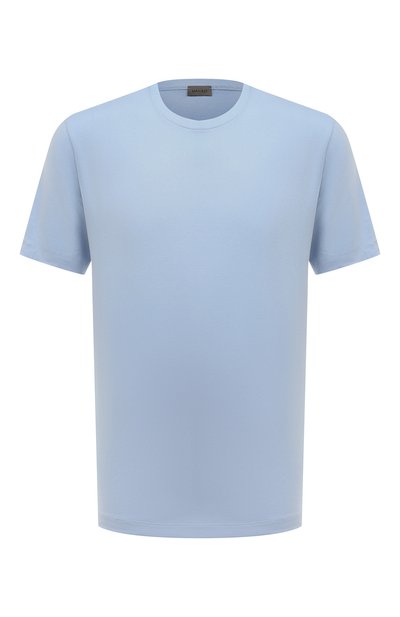 В голубой футболке будет комфортно в любой ситуации: она подойдет и для создания повседневного образа, и для отдыха или сна. Модель прямого кроя сшили из мягкого тонкого джерси с идеально гладкой поверхностью, сформированной ультратонкими отполированными нитями хлопка. Материал приятно ощущается на коже, дышит и не сковывает движения.
