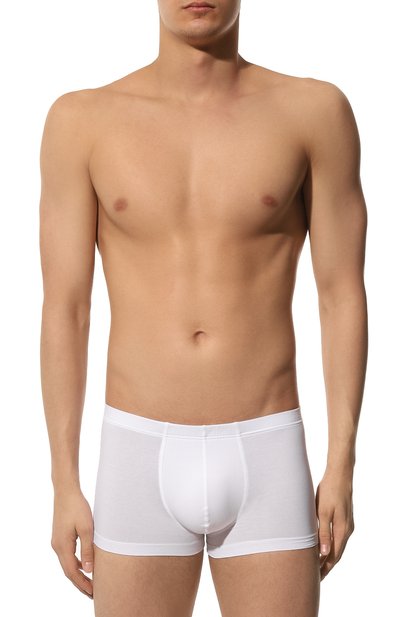 Для изготовления белых боксеров использовали почти невесомый тонкий трикотаж из длинноволокнистого мерсеризованного хлопка пима с добавлением прочной гладкой лайкры: шелковистый на ощупь материал хорошо пропускает воздух и быстро отводит влагу, поддерживая оптимальный микроклимат тела. Для комфортной посадки облегающую модель дополнили эластичным поясом.