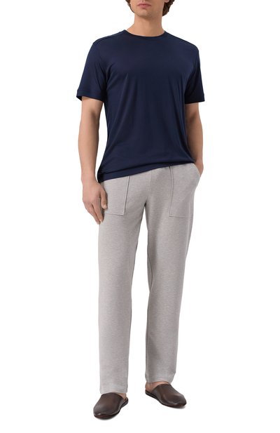 Для пошива серых меланжевых джоггеров использовали мягкое вискозное джерси с шелковистой на ощупь фактурой. Легкий материал идеально пропускает воздух и хорошо тянется, поэтому модель с регулируемым поясом-кулиской и двумя прорезными карманами не сковывает движения.