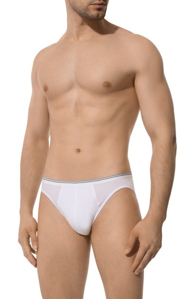 Белые брифы с анатомическим кроем, обеспечивающим удобную посадку без сдавливания, выполнили из эластичного джерси. Для производства пряжи использовали самый редкий в мире хлопок Sea Island, выращенный на Карибских островах и собранный вручную: тончайшие длинные волокна этого мягкого материала отличаются особой прочностью, поэтому трусы приятн о ощущаются на теле и долго сохраняют первоначальный внешний вид даже после множества стирок.