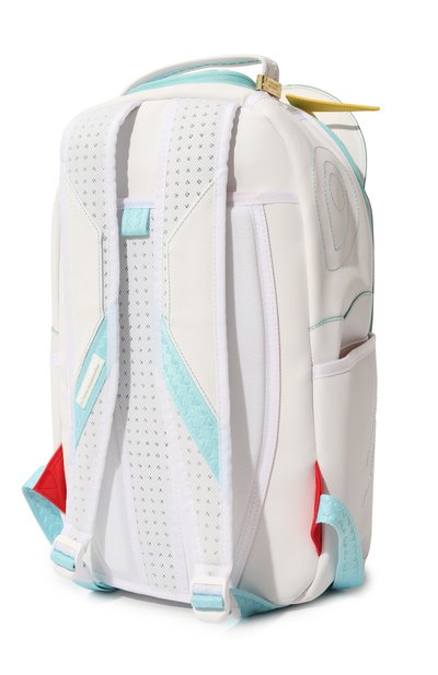 Для пошива кремового рюкзака с короткой ручкой и широкими регулируемыми лямками использовали плотный текстиль. Боковые и переднюю панели декорировали объемными драпированными рюшами из воздушного тюля. Сам аксессуар, как и внутренний карман, закрывается молнией.
