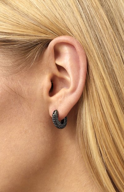 Серебристые небольшие серьги органично дополнят и коктейльный наряд, и простой повседневный образ. Аксессуар изготовили из сплава с покрытием родием. Его холодное сияние многократно усиливает блеск множества миниатюрных цирконов, которыми декорировали модель. Изделие дополнили накладкой в виде черной звезды.