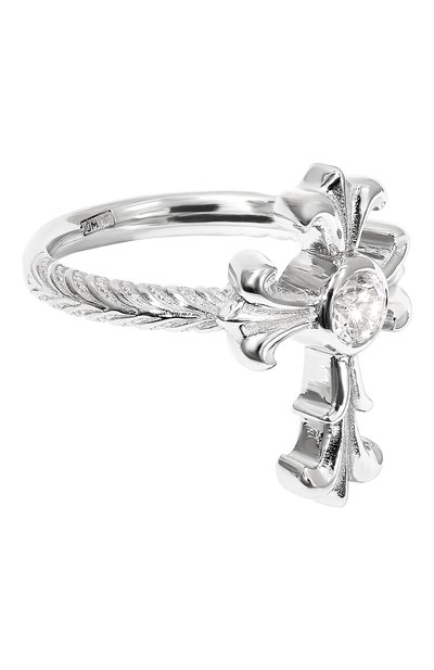 Для создания кольца Destiny с рельефным мотивом на шинке использовали прочное серебро 925-й пробы. Холодное сияние отполированного до зеркального блеска металла усиливает сияние полупрозрачного фианита, которым инкрустировали вставку в форме барочного асимметричного креста.