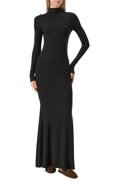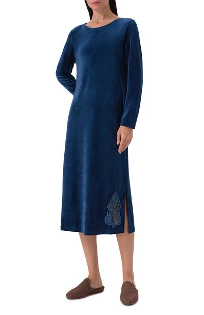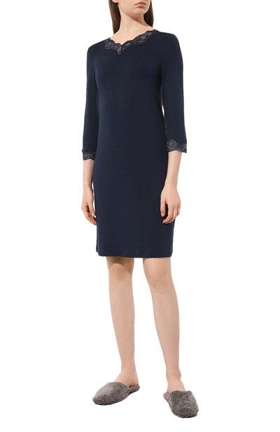 Темно-синяя сорочка с длинными рукавами и шалевым воротником сшита из приятного на ощупь джерси с гладкой шелковистой поверхностью. Легкий материал из гипоаллергенного лиоцелла поддерживает комфортную терморегуляцию, а крой не ограничивает движения. Модель отделана узким кремовым кантом.