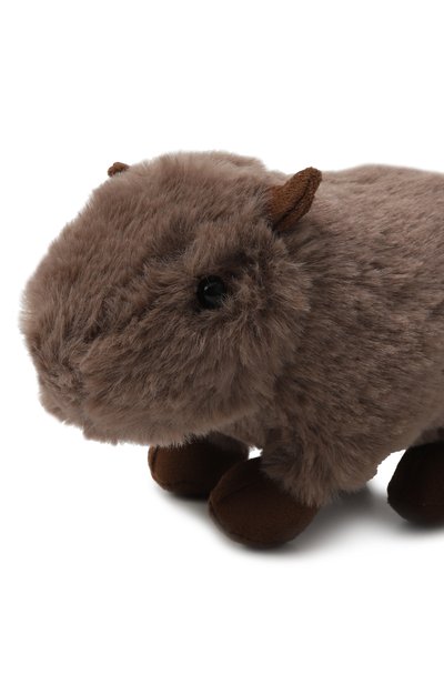 Мягкого бегемота сшили из плюша на основе полиэстера. Уши и ноздри отделали коричневой тканью, а глаза выполнили из глянцевого пластика. Игрушка подойдет для детей с рождения.