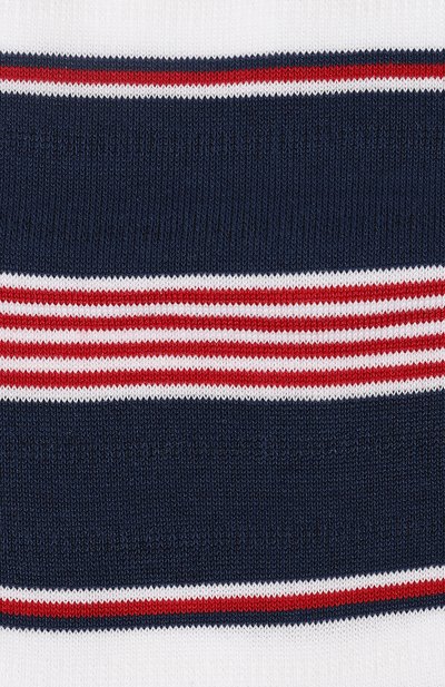 Для создания полосатых носков Microblock с высоким голенищем использовали нежную хлопковую пряжу фильдекос. Нити туго скрутили из нескольких, а затем обработали газом, получив максимально гладкий и прочный, но при этом мягкий и дышащий материал. Формованные пятку и мыс связ али более плотно, а широкую манжету выполнили резинкой.