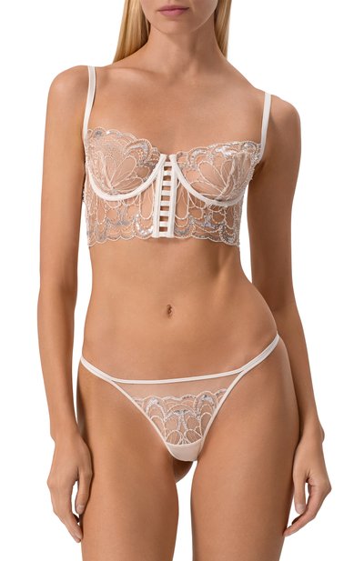 Слипы с фестончатым поясом сшили из комбинации гладкого джерси и полупрозрачного тюля с цветочной вышивкой. Трусы с плоскими швами дополнили хлопковой ластовицей.