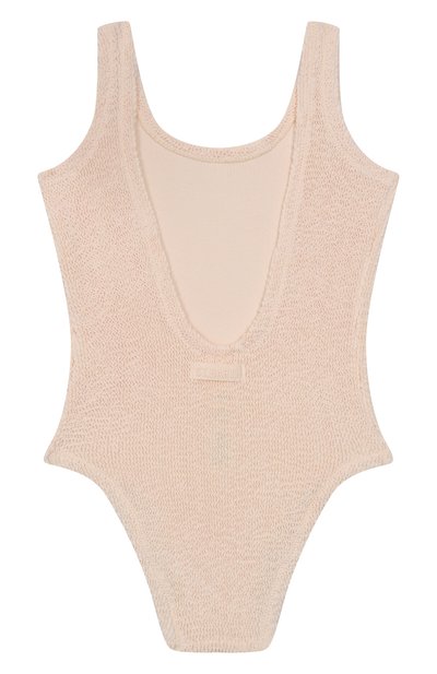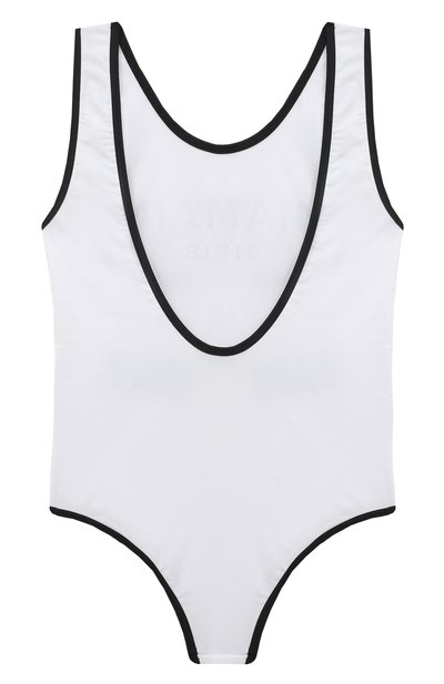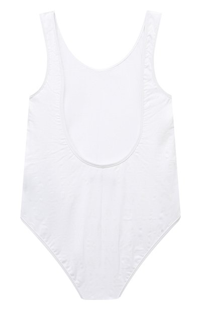 Белоснежный слитный купальник с открытой спиной и широкими бретелями изготовили из шелковистой эластичной микрофибры. Приятный на ощупь материал быстро сохнет, легко тянется и не деформируется под воздействием соленой и хлорированной воды. Роль декора играет черный логотип спереди.