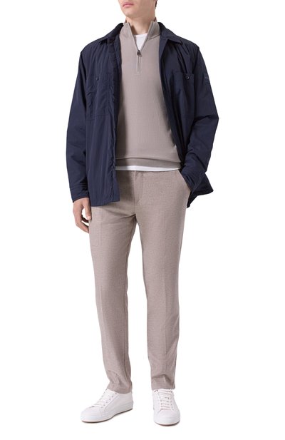 Прямые брюки с боковыми и задним карманами на молниях мастера марки, основанной Вилли Богнером, сшили из мягкого эластичного трикотажа с вафельным микроузором. В составе материала соединили отборный хлопок и прочный шелковистый модал, этому он отлично пропускает воздух, поддерживает оптимальный микроклимат и долго не теряет безупречный вид. Удобную посадку на талии обеспечивает широкий пояс с внутренней регулируемой кулиской.