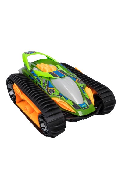 Зеленый вездеход VelociTrax на гусеничном ходу легко преодолеет все преграды бездорожья. Машинка из ударопрочного пластика способна вращаться на 360°, крутить кульбиты, переворачиваться и продолжать движение на максимальной скорости до 14 км/ч даже по склону 45%. Пульт с дальностью действия до 40 метров работает на частоте 2,4 ГГц, поэтому можно устраивать соревнования до 10 участников. Модель заряжается стандартным USB-кабелем всего за час.