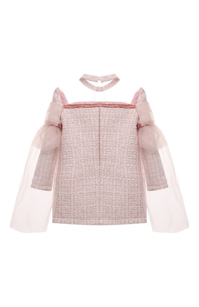 Светло-розовое приталенное мини-платье с длинными объемными рукавами и широким воротником-стойкой станет основой праздничного образа ребенка. Изделие сшито из приятной на ощупь немнущейся вискозы с жаккардовыми цветочными узорами. Модель застегивается сзади потайной молнией.