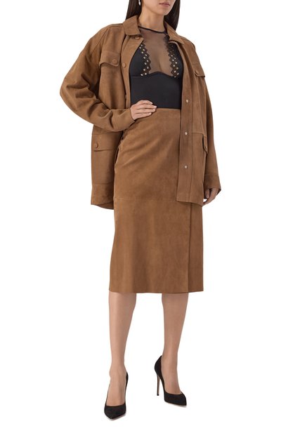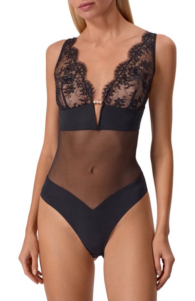 Черное боди с корсажной основой, моделирующей фигуру, впишется в образ любой палитры, заменив топ или блузу. Для пошива лаконичной модели с рукавами до локтя и высокой горловиной использовали приятный телу эластичный трикотаж на основе дышащей вискозы. Изделие с узкими тюлевыми вставками телесного оттенка застегивается молнией сзади.