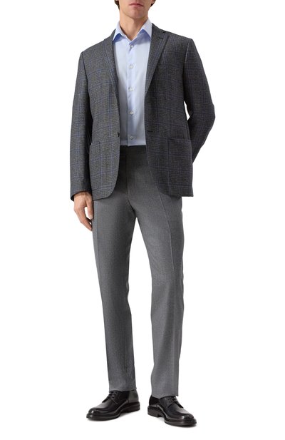 За границы формального гардероба лаконичную голубую рубашку с нагрудным карманом выводят короткие рукава, воротник button-down и фактура материала. Для создания модели выбрали тонкий лен, который почти не препятствует циркуляции воздуха и дарит ощущение свежести. Наши стилисты предлагают включить изделие в непринужденн ый летний образ с белой футболкой, свободными черными шортами и шлепанцами.
