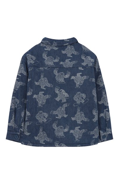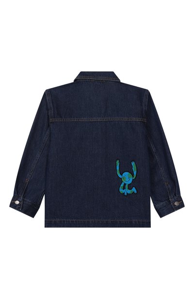 Темно-синяя джинсовая куртка-рубашка станет хорошим спутником в прохладную погоду. Для пошива изделия с двумя нагрудными карманами использовали мягкий плотный хлопок с добавлением эластана. В паттерне из множества литер, который полностью покрывает вещь, читается логотип марки. Его поддерживает как застежка Lion Signature, так и брендированная нашивка сзади.