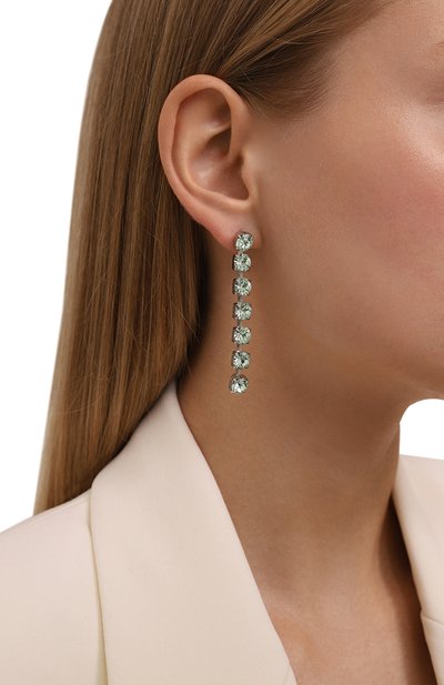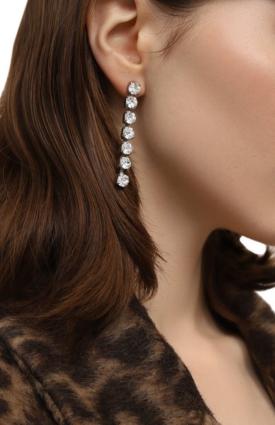 Серьги с застежкой-пусетой выполнили из латуни с покрытием золотом 585-й пробы. Украшение с длинными подвесками инкрустировали розовыми кристаллами.