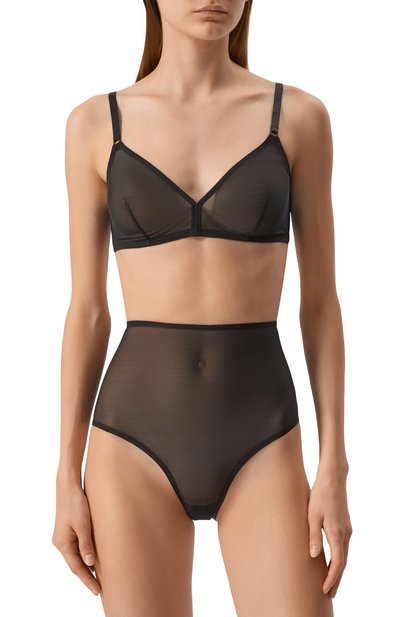 Черные трусы с высокой посадкой выгодно подчеркивают силуэт. Модель из линии Euphoria декорировали по бокам каплевидными вырезами с отделкой из экокожи, люверсами и имитацией корсетной шнуровки. Для пошива выбрали эластичную микрофибру из вторичного нейлона, которая хорошо проводит воздух и комфортно облегает бедра.