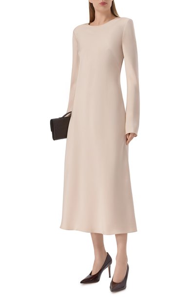 Платье Wintour Maxi выполнили из атласа на основе полиэстера и вискозы. Модель с круглой горловиной и вытачками, формирующими приталенный силуэт, оставили без декора.