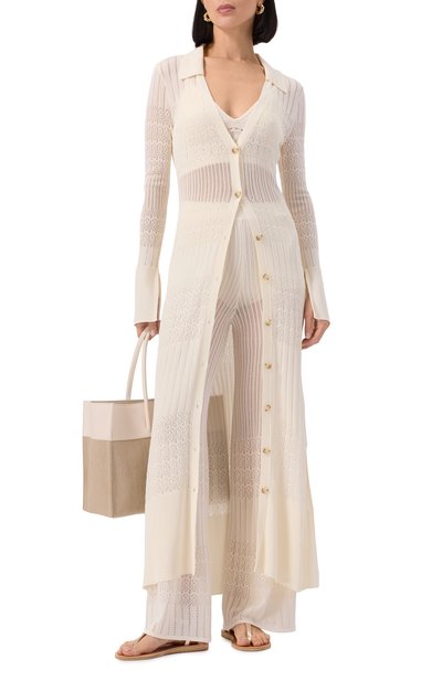 | Параметры изделия для размера M Обхват груди 95 см, ширина плеч 40 см, длина рукава от плечевого шва 75 см, обхват талии 86 см, обхват бёдер 102 см, длина изделия по спинке 131 см. |