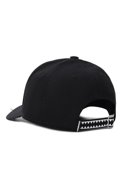 В дизайне черной бейсболки сыграли на контрасте фактур: матовой хлопковой тулье противопоставили козырек из глянцевого полупрозрачного акрила. Принадлежность аксессуара бренду, основанному Карлом Лагерфельдом, обозначили вышитым логотипом с адресом штаб-квартиры марки 21 Rue St. Guillaume Paris спереди и резиновым патчем сзади. Изделие дополнили ремешком с металлическим зажимом, который позволяет отрегулировать посадку на голове.