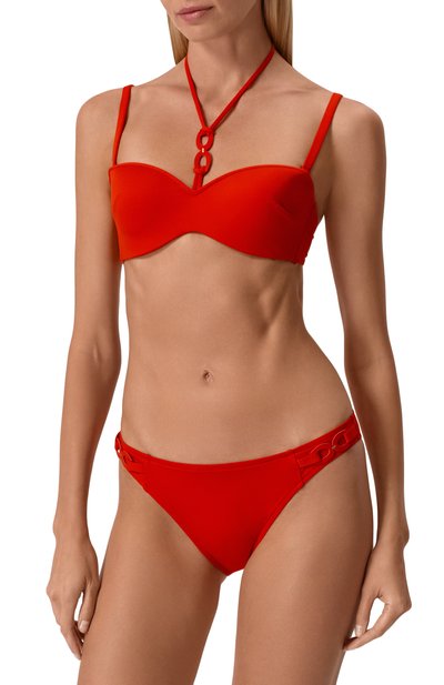 Плавки-бикини из линии Grace Infinie выполнили из быстросохнущей лайкры с коэффициентом защиты UPF 50. Модель с функциональными кулисками по бокам украсили звеньями цепи.