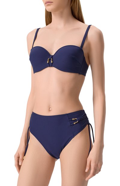 Для изготовления плавок из коллекции Grace Infinie использовали эластичную быстросохнущую лайкру с защитой от УФ-лучей UPF 50. Модель с регулируемыми кулисками по бокам декорировали крупными звеньями с золотистой накладкой.
