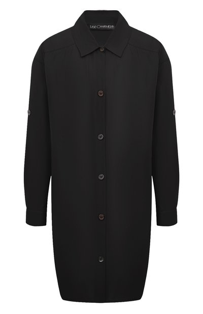 Черная удлиненная рубашка станет удачным завершением пляжного образа. Для пошива модели с фигурным асимметричным низом и спущенной линией плеч использовали тонкую хлопковую ткань. В состав материала добавили нежный шелк, поэтому струящееся изделие особенно приятно ощущается на коже и долго не теряет безупречный вид.