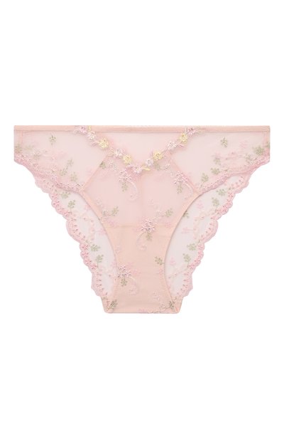 Трусы из коллекции Waouh Mon Amour выполнили из тонкого, почти прозрачного тюля цвета Amour Aurore. На этом нежном материале вышили романтичный цветочный узор, а проймы подчеркнули фестонами. Модель с низкой посадкой выкроили так, чтобы спереди и сзади получились треугольные вставки.