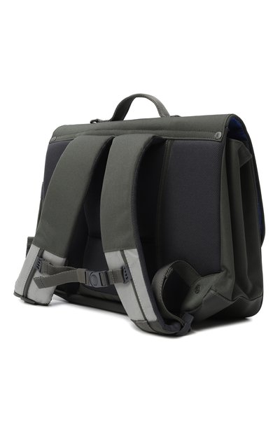 Темно-зеленый рюкзак со светоотражающими деталями сшит из прочного текстиля, произведенного из переработанных пластиковых бутылок. Экологичный материал не промокает и легко очищается от загрязнений, а мягкие широкие ремни и эргономичная спинка правильно распределяют нагрузку. Аксессуар с вместительным внутренним отделением, крупным внешним карманом и съемным круглым футляром для монет украшен значком и фигурными пуллерами. Сбоку – слот для бутылки с водой.