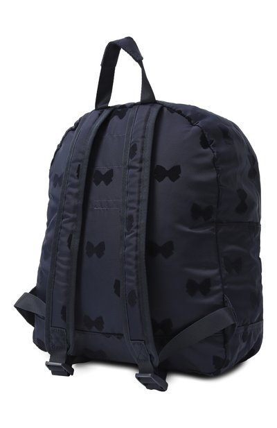 Для создания рюкзака темно-зеленого оттенка использовали прочный полиэстер, который не пропускает влагу и легко очищается от загрязнений. Для производства материала использовали переработанные пластиковые бутылки, что позволило уменьшить вред, причиняемый окружающей среде. Внутрь поместятся учебники, пенал и планшет или спортивная форма. Модель украсили принтом и аппликациями в виде животных. Аксессуар с двумя ручками затягивается шнурами, которые также служат лямками.
