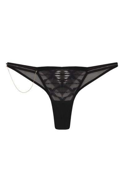 Для изготовления черных трусов из коллекции Xpression использовали нежный тюль и тонкий материал French Leavers. В графичном мотиве на нем зашифровали литеру X. Сзади модель украсили фактурной вставкой, напоминающей плетение. В комплект включили золотистую цепочку.