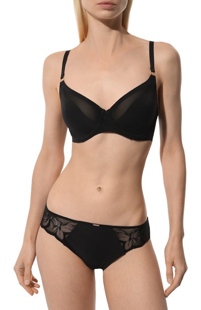 Бюстгальтер Graphic Allure украсили тюлевыми деталями с этническим принтом. Гладкие чашечки пуш-ап из пеноматериала с эффектом памяти дополнили кантом из тюля. Модель с золотистой фурнитурой на регулируемых бретелях застегивается двумя крючками с четырьмя вариантами фиксации.