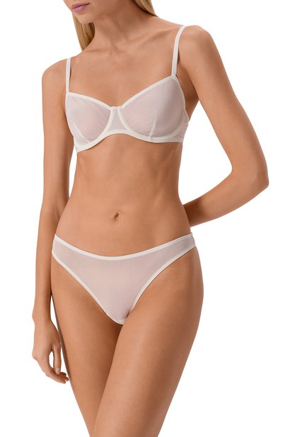 Белые слипы из коллекции Graphic Allure почти не ощущаются на теле и поддерживают комфорт. Трусы выполнили из эластичного тонкого текстиля, хорошо пропускающего воздух. Пояс из полупрозрачного материала украсили изысканным графичным узором в тон.