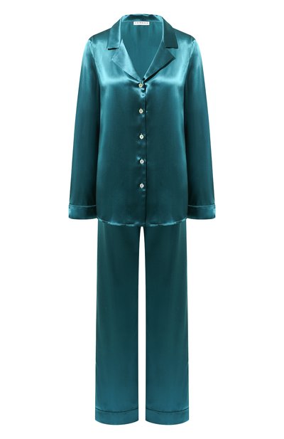 Безупречно гладкий атлас из чистого шелка придает свободной пижаме мягкость, а бирюзовому оттенку – яркость и глубину. Материал повышенной плотности, сотканный на итальянской фабрике у берегов озера Комо, отличается прочностью, поэтому модель надолго сохранит безупречный вид. Рукава рубашки и низ брюк с эластичным поясом дополнены манжетами.