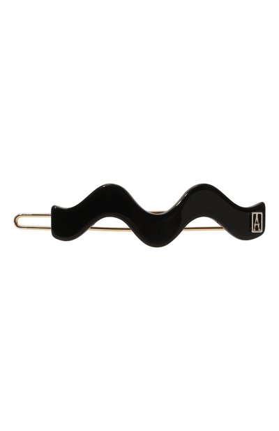 Плавные изгибы этой черной узкой заколки напоминают волны: игру света на водной глади передает блеск глянцевого покрытия. Его нанесли на прочный легкий ацетат, изготовленный из хлопка и древесной целлюлозы. Золотистый узкий зажим хорошо удерживает объемные пряди и не дает волосам выбиваться из прически.