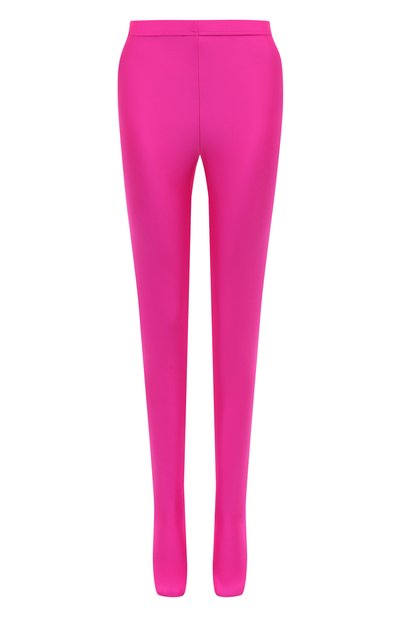 Розовые легинсы с закрытыми ступнями, как у колготок, изготовили из гладкого бифлекса на основе нейлона и спандекса. Такой материал хорошо тянется, комфортно облегает фигуру и создает легкий утягивающий эффект. Модель дополнили эластичным поясом, отвечающим за удобную посадку на завышенной талии.