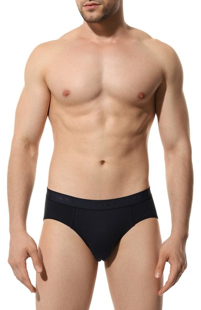 Для изготовления черных брифов из линии Daily Comfort использовали тонкий трикотаж на основе длинноволокнистого египетского хлопка. Мягкий материал с добавлением нитей эластана в состав ткани обеспечивает оптимальный микроклимат и не сковывает движения. Белье дополнили плоским поясом с повторяющимся логотипом марки. В комплекте — аналогичная модель.