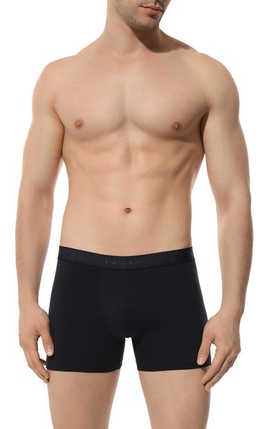 Для изготовления облегающих черных боксеров с плоскими швами использовали джерси стрейч из египетского хлопка. Материал с длинными тонкими волокнами очень мягкий, поэтому белье с эластичным брендированным поясом особенно приятно ощущается на теле. В комплекте – еще одни такие же трусы.